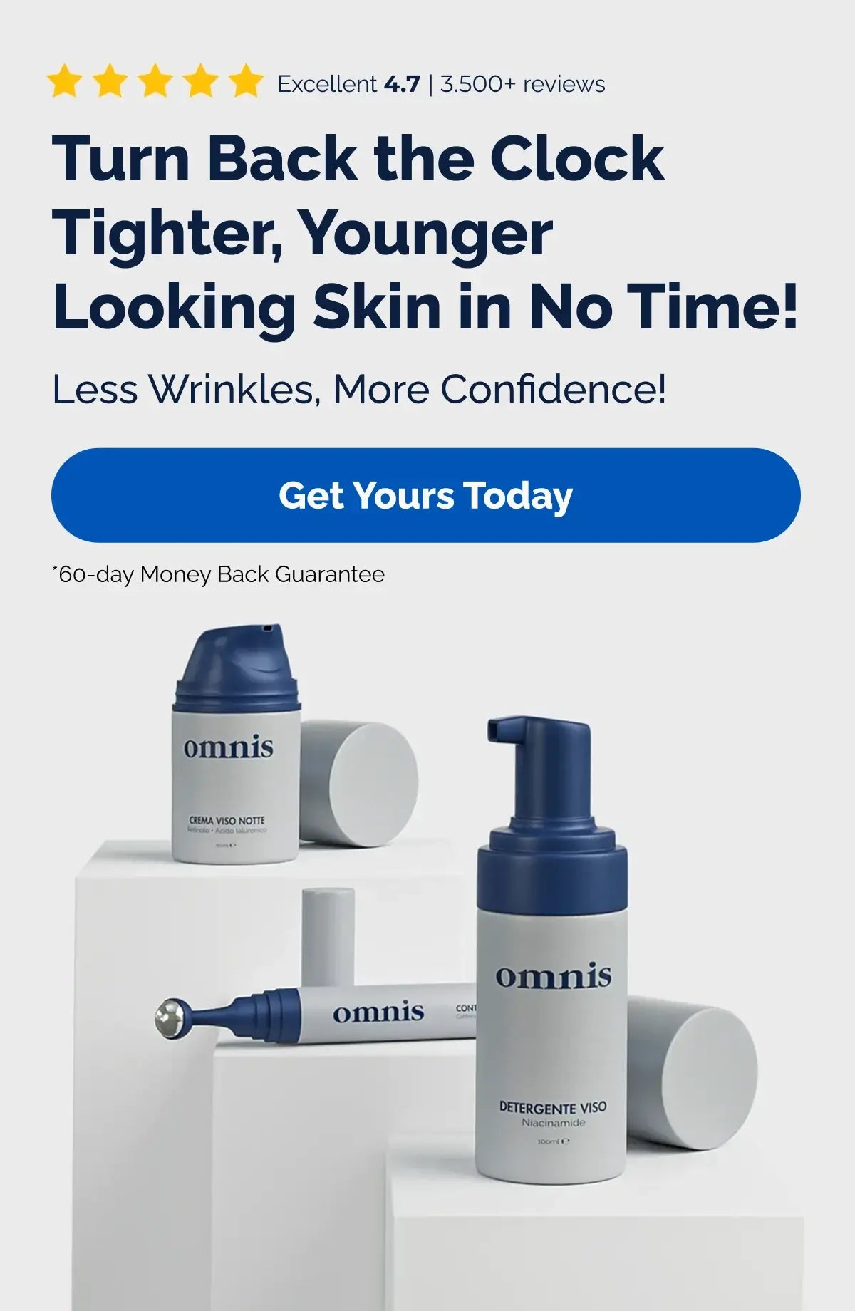 "The Omnis kit is perfect for those who want a complete and simple routine. In just three minutes a day, my skin is younger and more elastic, and wrinkles are visibly reduced"